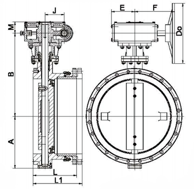 | DN | L | L1 max | A | B | E | F | J | M | Do |